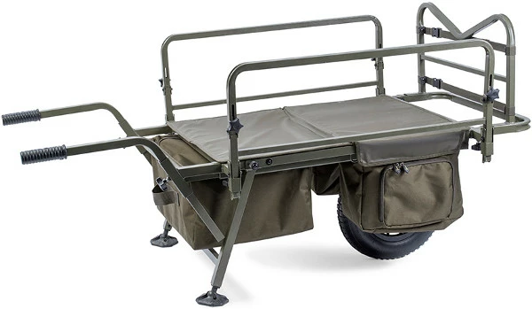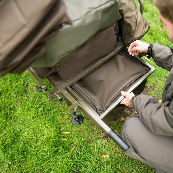 De Avid Transit Extreme Carp Barrow maakt het transporteren van zware ladingen over lange afstanden eenvoudiger dan ooit tevoren! Met de in breedte instelbare zijkanten kun je je spullen nu gemakkelijk laden en lossen en in een willekeurig aantal configuraties vervoeren. De barrow beschikt ook over een uitschuifbaar voorrek waarmee grote items zoals emmers, stoelen en bedchairs veilig kunnen worden gedragen. De twee opbergvakken aan de zijkanten zijn van ritsen voorzien voor een gemakkelijke toegang. Voorzien van een ingebouwde verwijderbare carryall die van onder het laadplatform schuift, waardoor een grote hoeveelheid uitrusting kan worden opgeslagen.