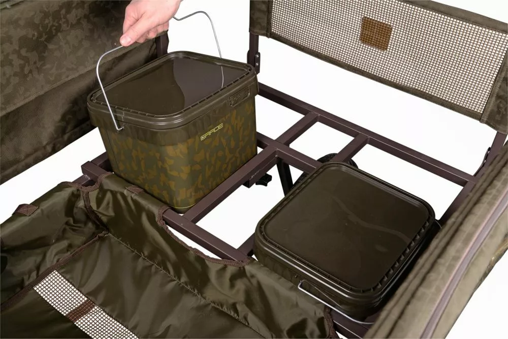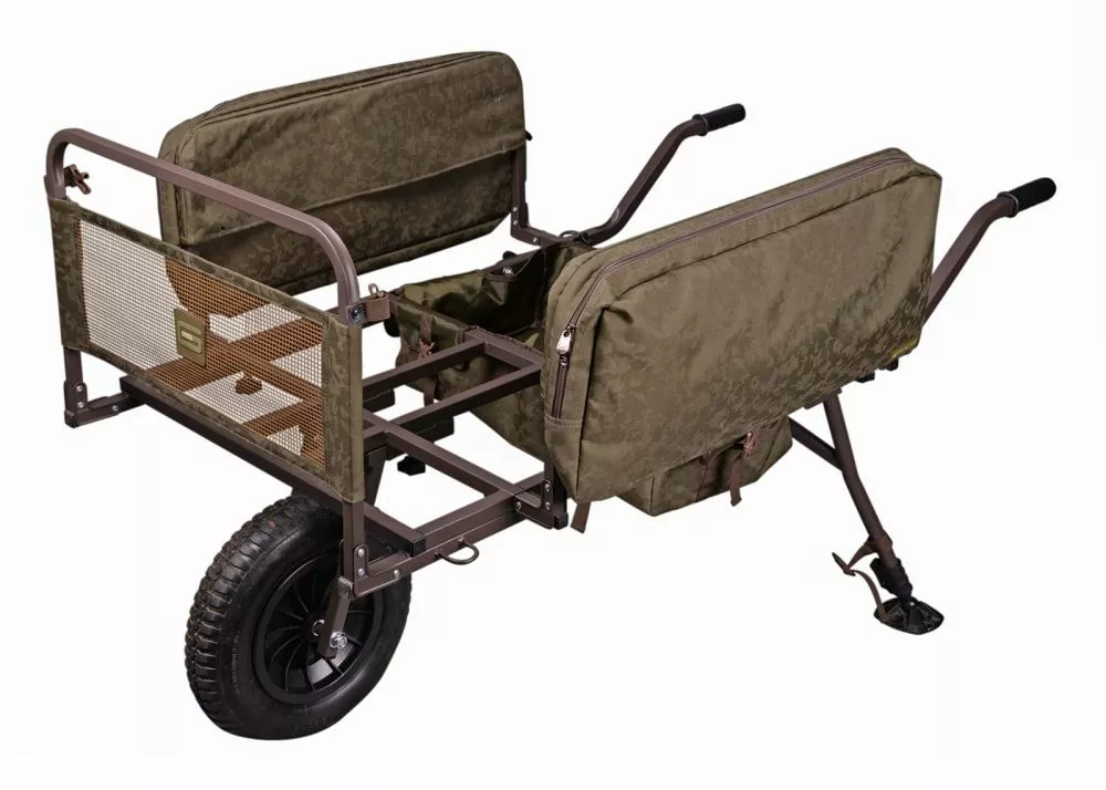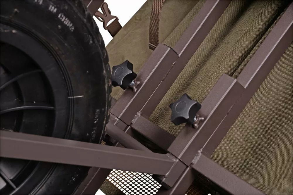 De Grade Bucket Barrow is een oerdegelijke barrow die eenvoudig te vervoeren en in elkaar te zetten is middels een elastiek-/kliksysteem. Hij is voorzien van ruime externe opbergvakken en is extra stabiel door de slim ontworpen naar buiten staande poten. Het frame is speciaal vormgegeven zodat de Grade Buckets er precies inpassen en je geen ruimte verspeelt. De moddervoeten op de barrow zijn traploos te verstellen zodat je de barrow fatsoenlijk neer kan zetten tijdens het uitladen. Tot slot is het wiel eenvoudig uitneembaar waardoor het compact opbergt. Een uiterst innovatieve en praktische trolley die in vrijwel elke kofferbak past.