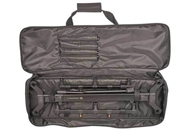 Basis is de Strategy ST110 Rodpod. Een gemakkelijk te gebruiken en zeer stabiele rodpod, die volledig verstelbaar is naar je set-up voorkeuren. Ideaal voor het vissen vanaf een steiger of op een harde ondergrond en inzetbaar voor alle type visserijen en wateren. De rodpod is geschikt voor twee hengels en wordt geleverd in een handige draagtas.