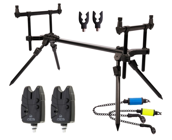 Een complete rod pod set, perfect voor het statisch vissen op karper of met doodaas op snoek! De set bevat – naast een rodpod – beetmelders, hangers en achtersteunen.