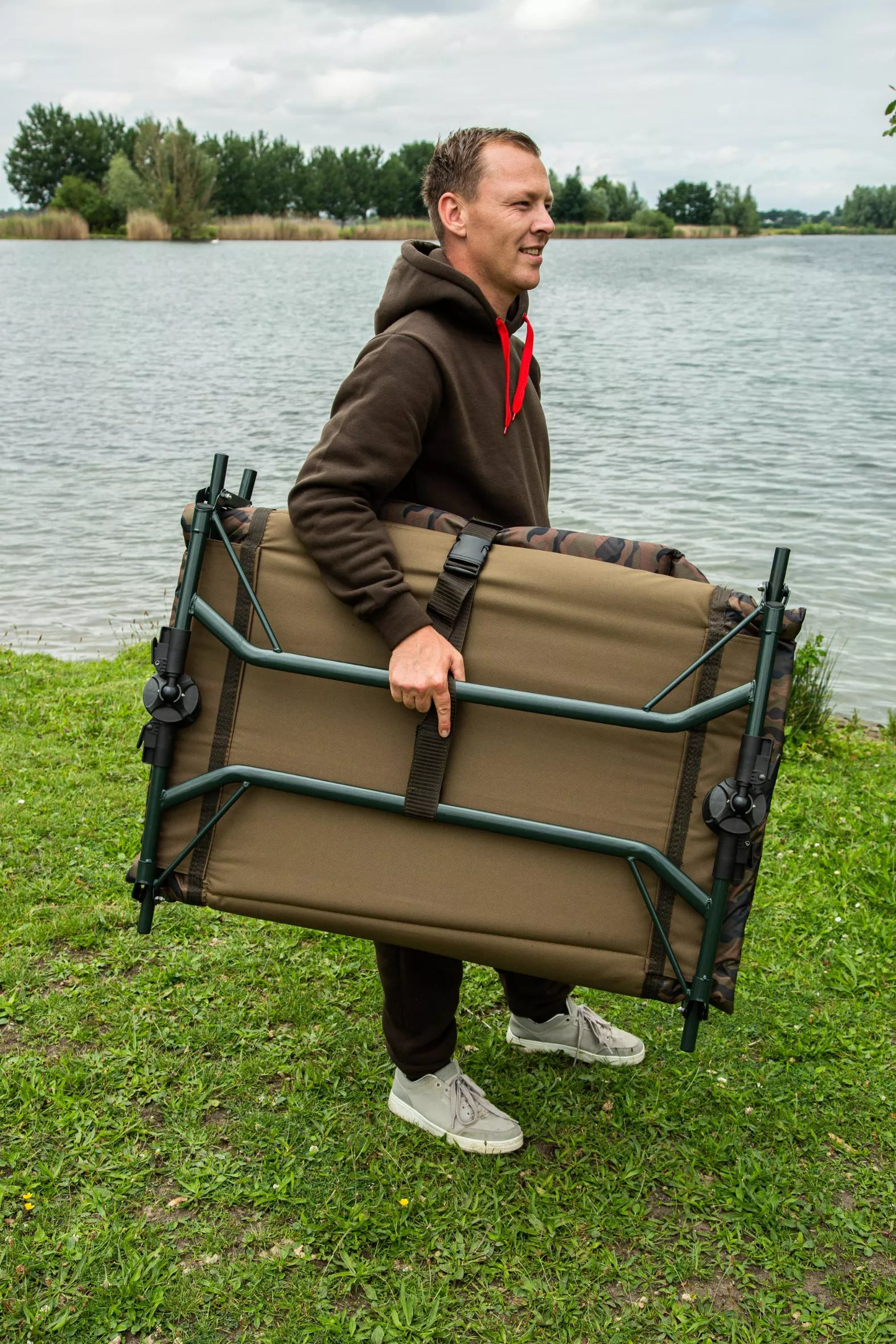 Deze stretcher van Ultimate heeft 6 verstelbare poten die voorzien zijn van moddervoeten. Hierdoor kan deze op ieder terrein gebruikt worden. De luxe afgewerkte stretcher is gebouwd rond een stevig kwaliteitsframe. Het comfortabele fleece liggedeelte heeft een elastische bevestiging en een extra zacht hoofdeinde, garanties voor maximaal ligcomfort. De stretcher is snel en eenvoudig op te stellen en weer op te vouwen en heeft een laag transportgewicht. Kortom: de perfecte stretcher voor langere sessies!